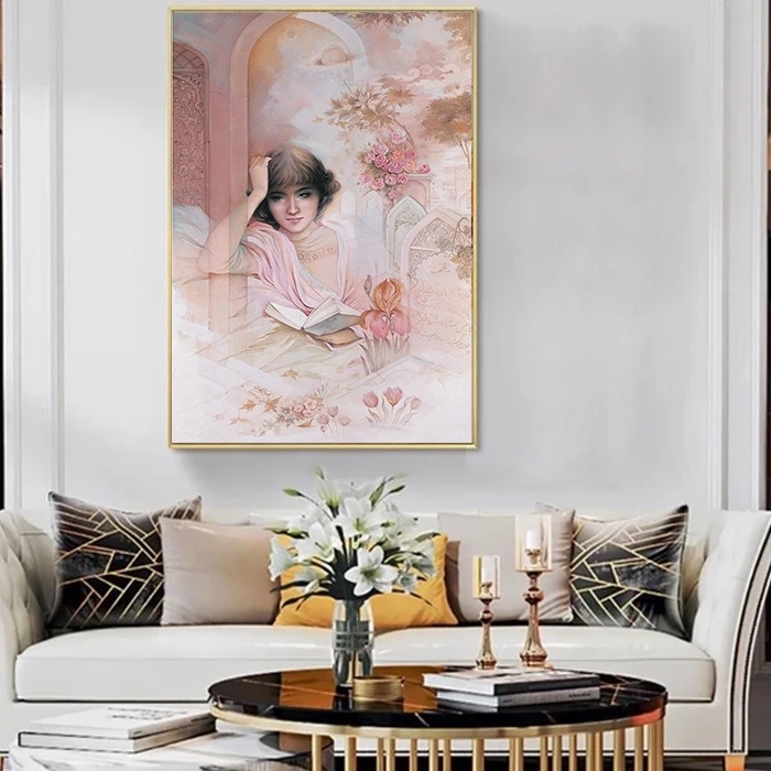 Alliant les techniques classiques de la miniature persane à un sentiment intemporel de sérénité, cette pièce invite le spectateur à un monde de contemplation et de repos intérieur. Elle se dresse comme un témoignage du raffinement du détail, de l’harmonie des couleurs et de la profondeur spirituelle propres à l’art d’Aghamiri.